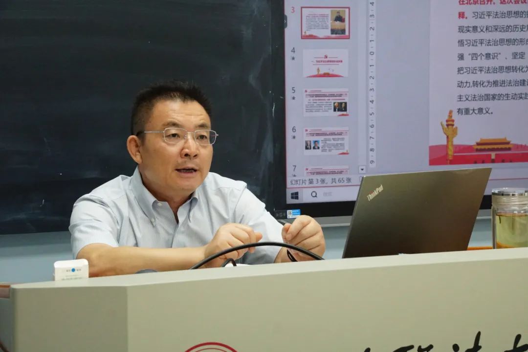杨建军从什么是习近平法治思想出发,围绕当今世界格局的变化,通过简明的语言和通俗的案例引出习近平法治思想的历史渊源,介绍了不同历史时期中国法治的发展。他强调,习近平法治思想是对马克思主义、毛泽东思想、邓小平理论、三个代表重要思想和科学发展观法治理论的继承和发展,是马克思主义法治理论中国化的最新成果。