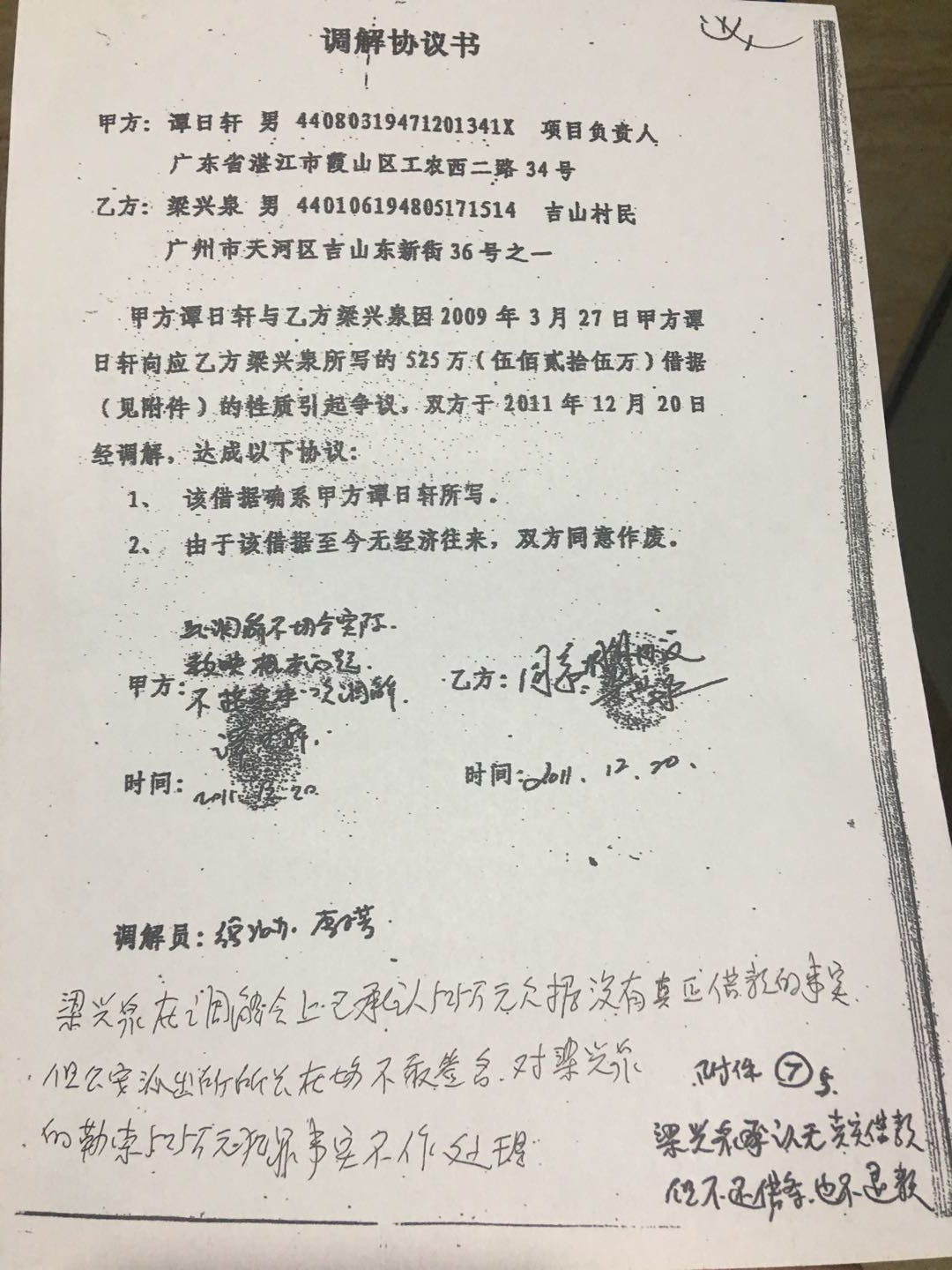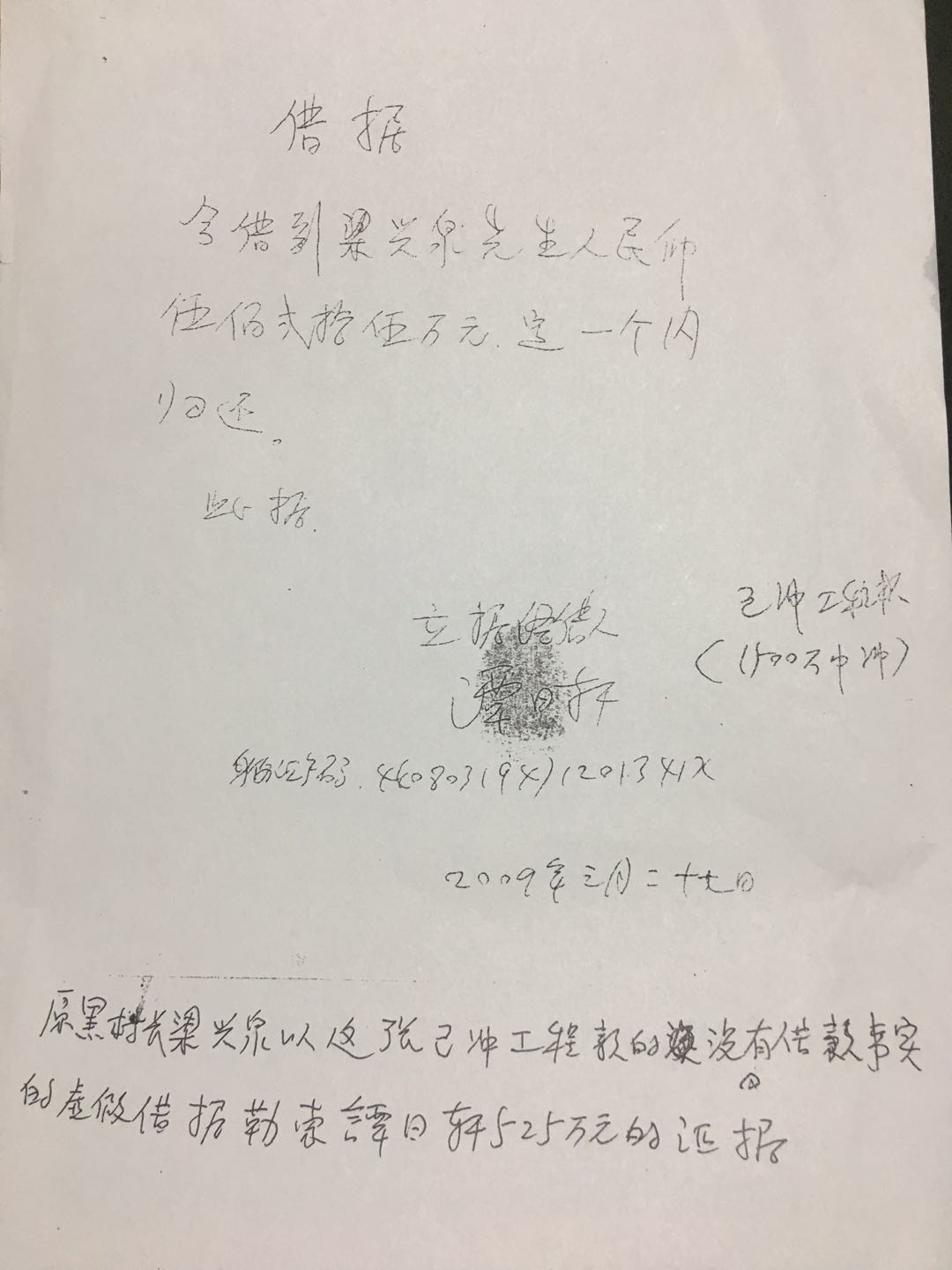 1,以一张525万元但没有实际借款的借据勒索谭日轩525万元,谭日轩不服向公安机关报案,经公安派出所和街道办维护中心调解,梁兴泉承认对此525万元借条没有实际付款,但梁兴泉在地方保护伞的支持下,至今没有把已从工程款中扣下的525万元退回给谭日轩(见附件资料)。 2,2012年,梁兴泉组织黑恶势力手段欺压谭日轩以付款给谭日轩工人过清明节的原因给他写了三张共250万元的假借条,梁兴泉以此假借条从他的合伙人梁礼贤处取款250万元。但却没有支付一分钱给谭日轩(见附件资料),250万元全部入了梁兴泉的私人腰包。 3,另外,梁兴泉恶意拖欠施工方代交税款350万元,协议约定工程税款由梁兴泉全权负责,梁兴泉至今没有将此税款还给谭日轩。(见附件资料) 以上3项梁兴泉共勒索诈骗谭日轩1125多万元。 以上统计,梁兴泉通过组织黑恶势力手段从1.6亿工程款总价中共强行扣去工程款8529.2万元。 更有甚者,在该工程的施工过程中,梁兴泉组织黑恶势力指使他的儿子梁志豪控制工地的沙石、水泥和混泥土等地方建筑材料的采购和供应,欺行霸市抬高价钱,从中牟取非法收入约300万元。 由于梁兴泉是本地黑恶势力组织的头目,欺压施工队谭日轩是外地人,便利用黑恶势力手段勒索和欺压谭日轩,至今不但一直不肯与谭日轩对账和支付尚欠的工程款,还于2014年5月10日,以同意对账为由骗谭日轩去他家中,用殴打和恐吓的手段扣留谭日轩当时带去对账的资料原件,至今不肯返还,以此毁灭证据达到赖账的目的。 综上所述;梁兴泉身为中共党员,做出与党的初心背道而驰之事。使受害人谭日轩全家走投无路,生活悲惨。为弘扬正义保护公民合法权益不受侵犯,敬请广州市督查部门、天河区直管部门予以关注,还百姓一个公道。中国反腐研究信息中心 调研员黄立安 |