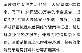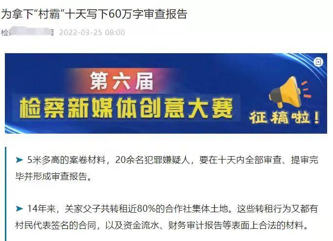 《为拿下“村霸”十天写下60万字审查报告》,这是今早一权威官网推送的正面典型宣传稿件,大意是说一级检察官助理李某曾十天审阅300本卷宗,写下1134页近60万字的审查报告,成功将22名重大涉黑案罪犯送上法庭,充分体现了一名新时代优秀检察官的感人事迹。 我今天要讲的,不是这名优秀检察官李某不能被宣传的问题,而恰恰相反,能够通过层层审核把关,最终获得第七届全国十佳公诉人荣誉获得者,一定是一名优秀、称职的优秀检察官。我想说的是,正是因为要宣传好选树好这样一名新时代优秀检察官的典型形象,单位通讯员、刊发媒体为其量身定制的宣传稿件才更应慎之又慎,特别在常识认知、内在逻辑上要经得起反复推敲,绝不是“十天审阅300本卷宗”、“写下1134页近60万字的审查报告”这种漏洞百出的荒谬稿件,这不是在选树他,这更像是在害他。